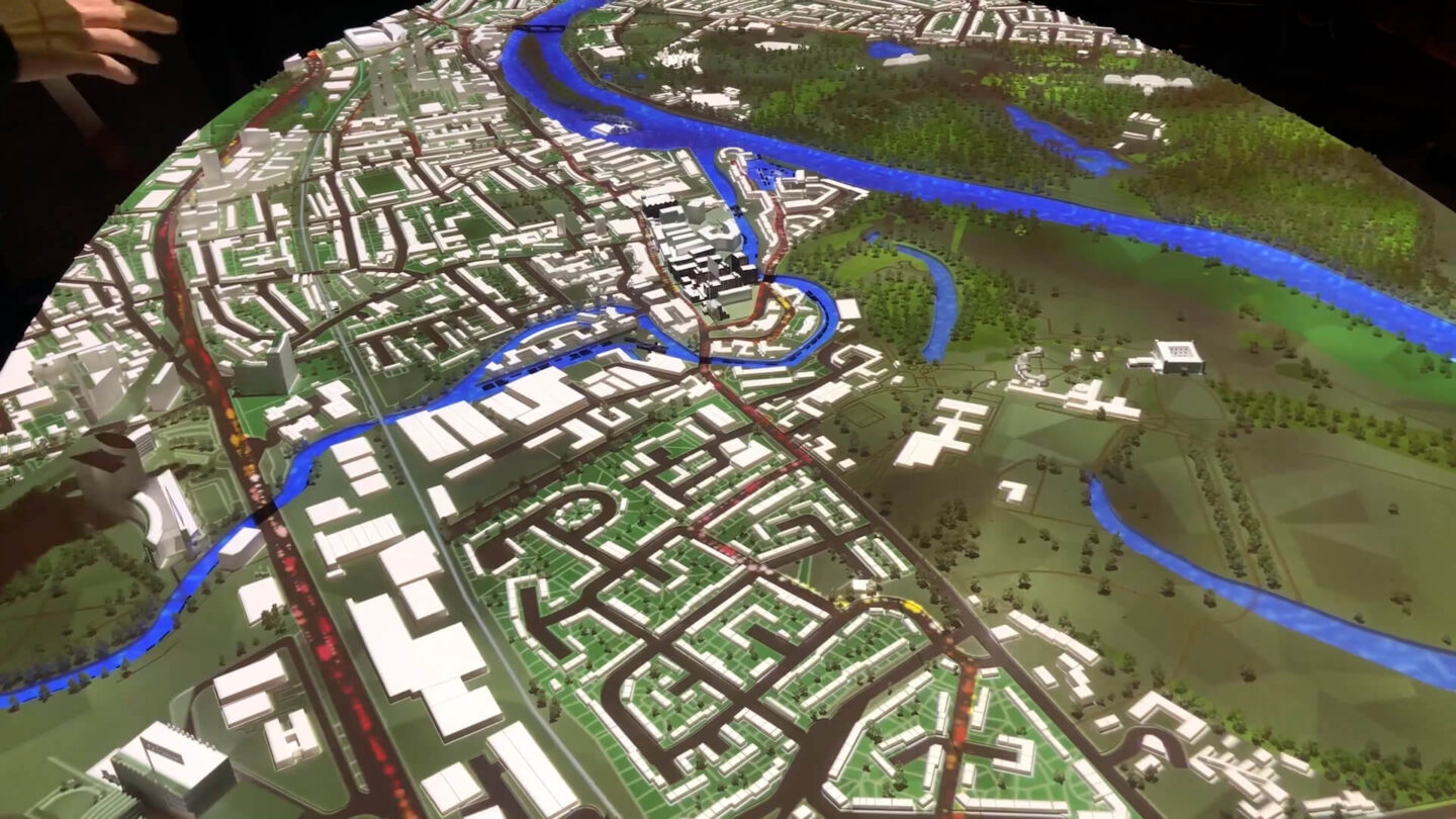 As part of the Brentford Project, Ballymore created an Experience centre complete with a cafe, a children’s play area and exhibition and events space. Using aspects of the film and graphical overlay, we created a projection map of the Brentford development to be overlayed on a physical model in the experience centre.