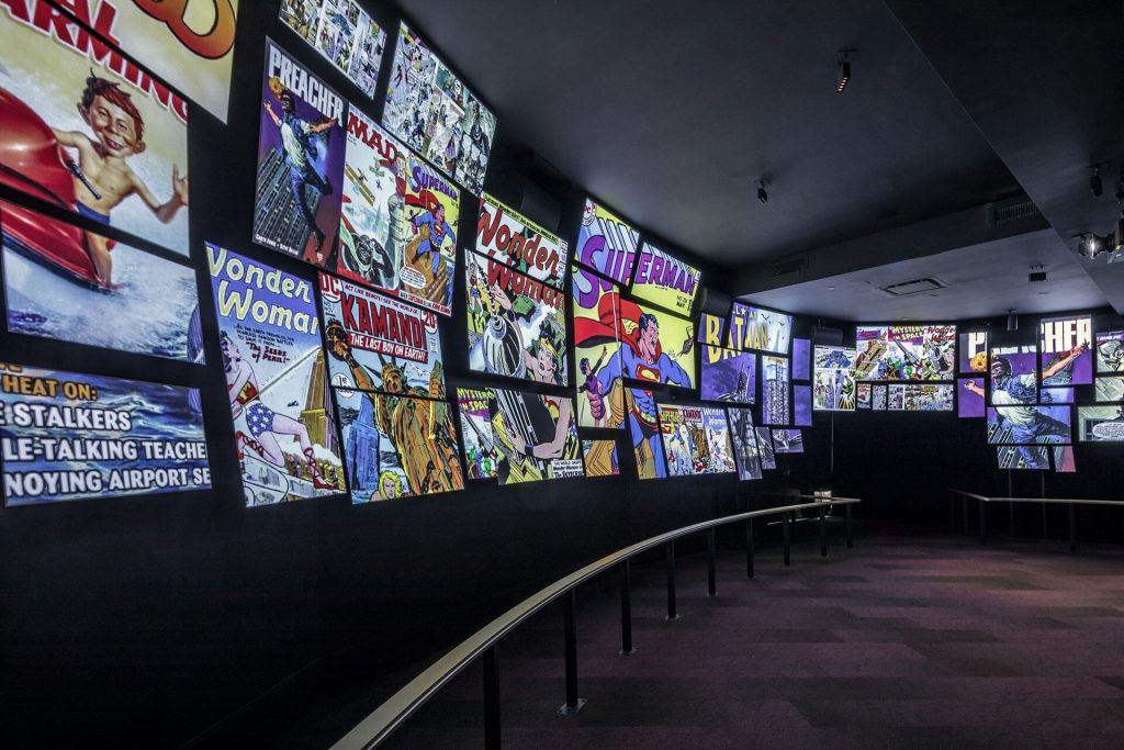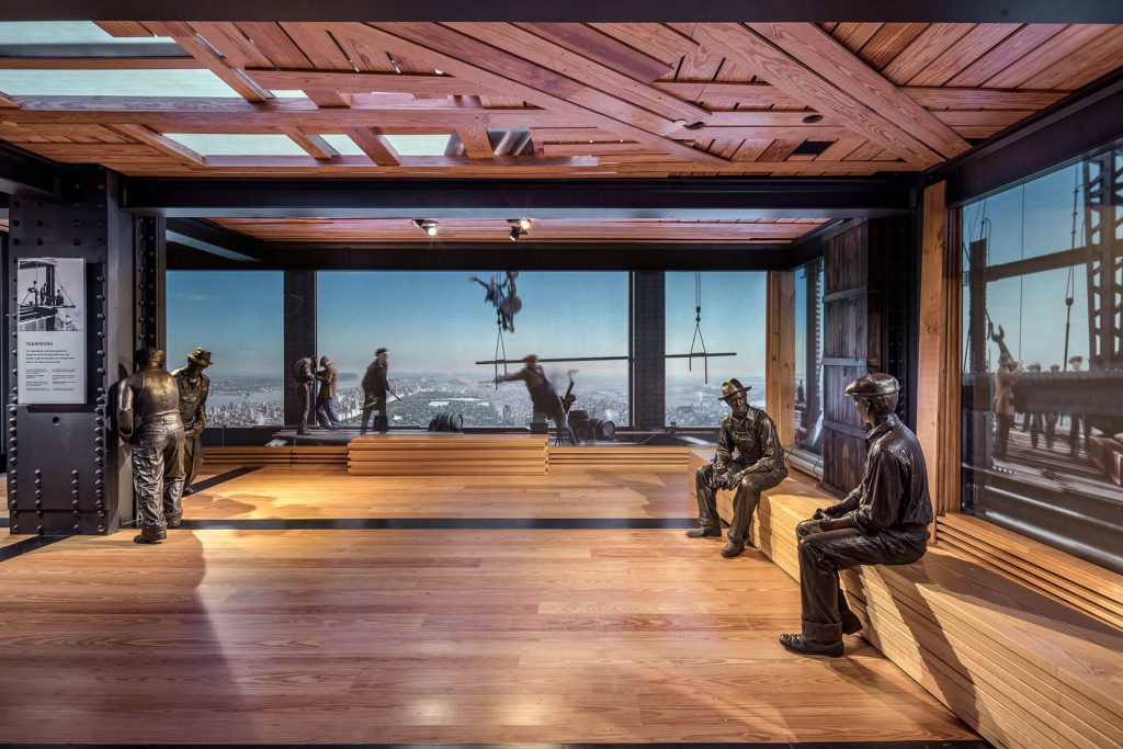 The Construction Gallery, inspired by the photography of Lewis Hine, displays a historically accurate life-size video piece that surrounds the visitor on four walls and into the ceiling. The looped film features 30 different actors, where hot rivets and steel beams fly overhead as the construction of the building is in full swing. Set to an original score recorded with a 50 piece orchestra commissioned by the Empire State Building, the World’s Most Famous Building exhibit celebrates the building’s starring role in pop culture from every decade since the 1930s.