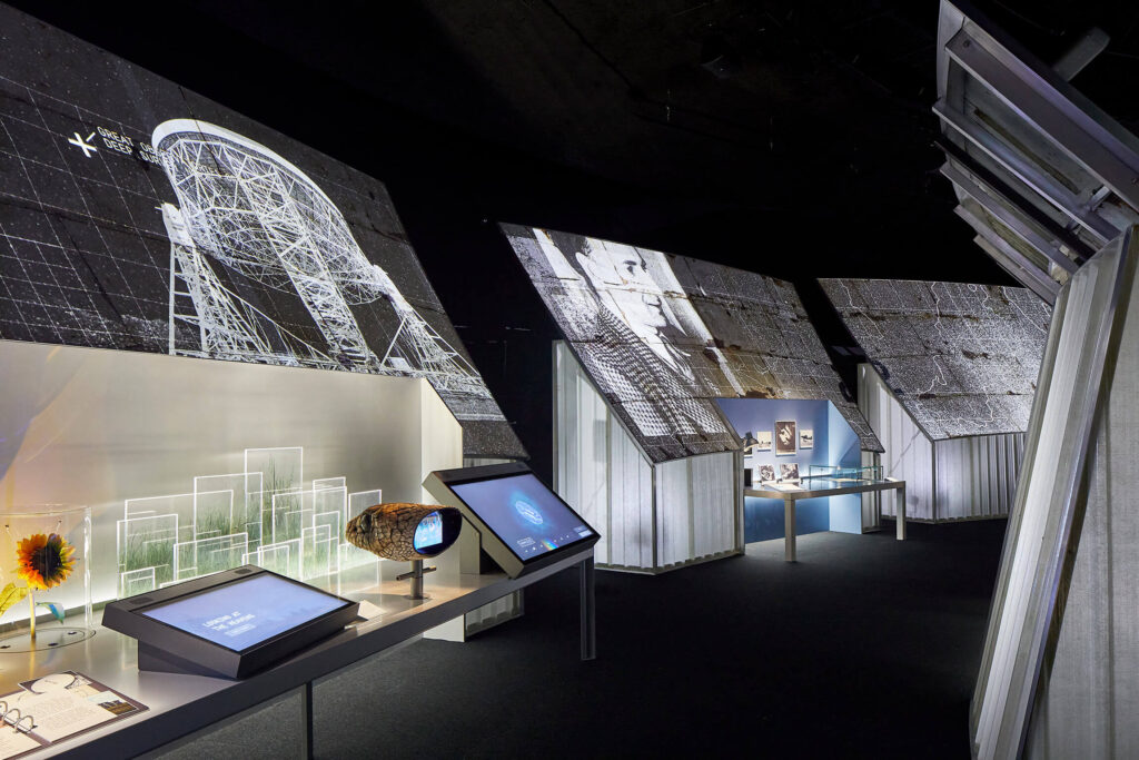 We designed and produced the digital media and graphic content for the permanent exhibition, including a 15 projector film exploring the universe sky and celestial objects, a 32 projector film within the custom-built planetarium charting the origins of Jodrell Bank, 10 interactive games, multiple linear films, audio edits and the design of all printed graphics.
