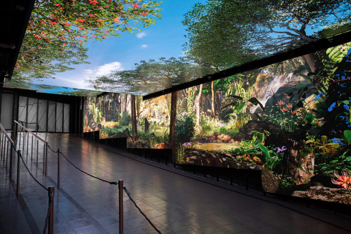 Go Wild at the Peak – is the last installation visitors pass before catching the tram. This installation is a full-immersion wraparound video experience. Wall and ceiling-length LED screens depict & mirror the natural beauty of Victoria Peak with a hyper-real rendering of woodlands, flora and fauna.