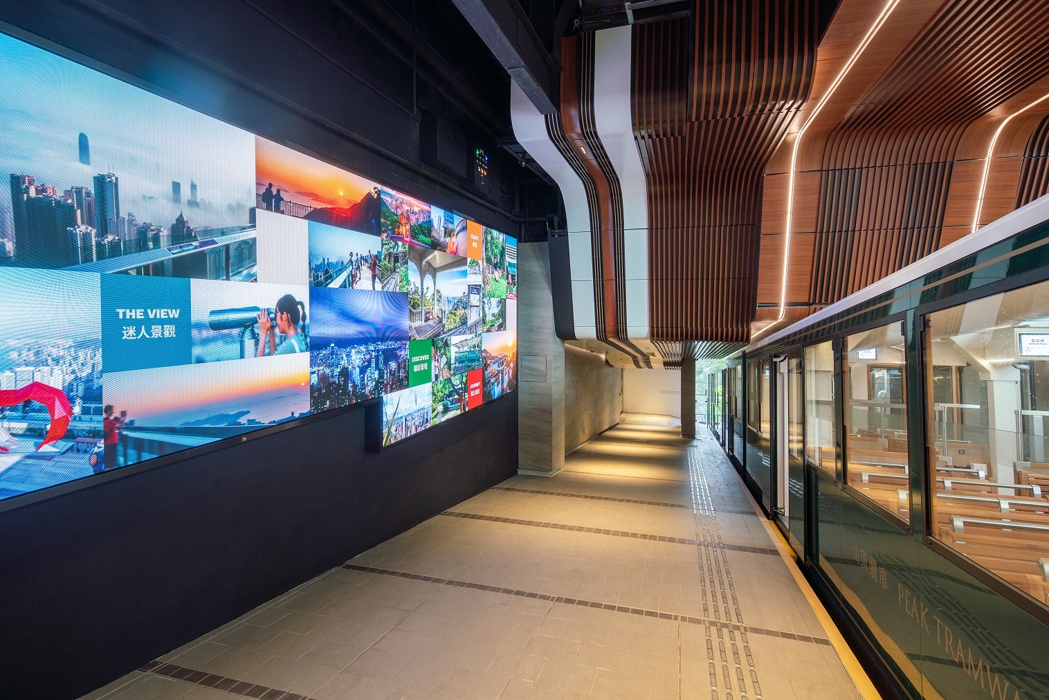 The 5th generation Peak Tram carried an average of 17,000 passengers to Victoria Peak daily, with this volume of visitors wait times often exceed two hours. Squint/Opera created elements of a visitor experience that would provide informative entertainment for 1000+ waiting passengers at any one time, whilst respecting the tramway as a functional mode of public transport.