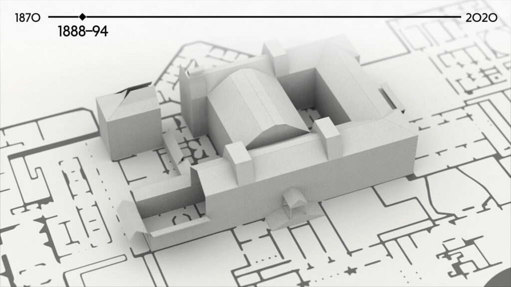 We created two films that were shown at the beginning and end of the exhibit space. The first film focussing on the period between 1870 to 1950 and the second exploring 1950 to 2020. The creative challenge with both films was to visualise how the galleries have changed and grown over time. We used archive imagery to map out the long-term architectural narrative and 3D animation to bring this story to life.