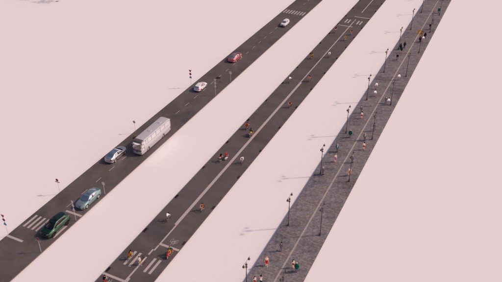 We created a choreographed, dynamic film that explored the unbuilt plans as if they were built. The audience was taken into the new city with Bjarke as a tour guide. As he explains his design philosophy for the Woven City, the plans manifest around him. The film set a new benchmark for architectural communications by blending digital animation with live presentation techniques.