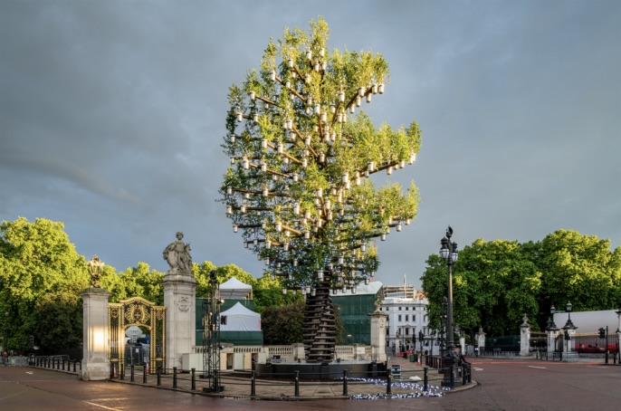 The Tree of Trees, standing at 21-metre-high, was unveiled during a special ceremony at Buckingham Palace on Thursday, 2nd June 2022, in honour of Her Majesty the Queen’s Platinum Jubilee. The sculpture, designed by Heatherwick Studio, is part of the Queen’s Green Canopy, a national community campaign to plant more trees and inspire the next generation.