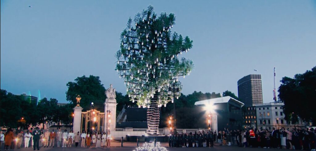 The film’s “Making of” segment focuses on the quick turnaround and national effort behind the fabrication of the Tree of Trees, highlighting the places and materials involved in the design and manufacture of the sculpture. It also highlights artisans’ efforts to get the piece ready in time for the Platinum Jubilee.