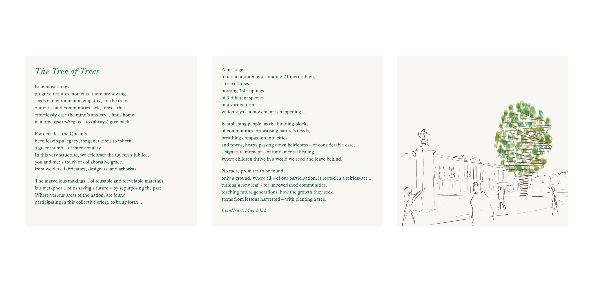A ‘making of’ film detailing the process and message behind the Tree of Trees sculpture created for the Queen’s Platinum Jubilee.